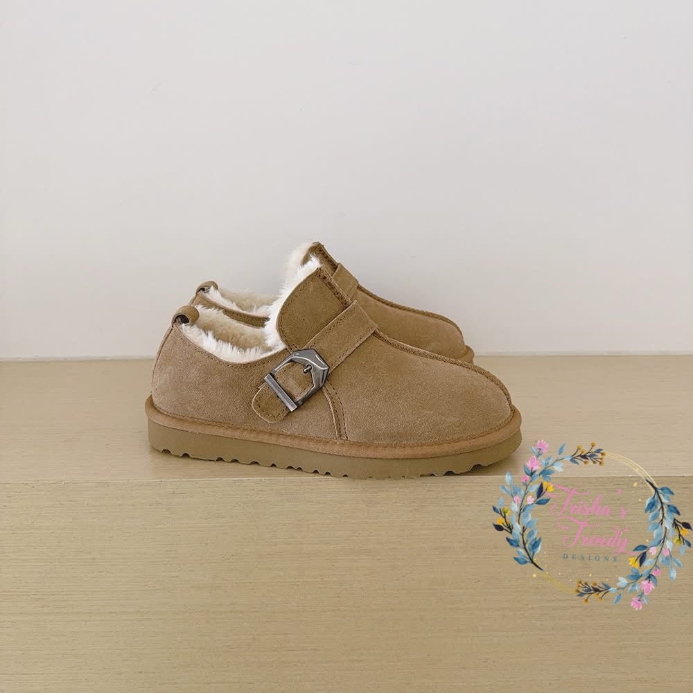 Step into comfort with our Morgan Buckle Slide—a playful take on the classic slide sandal. Crafted from luxe vegan leather and cozy faux fur, these slides deliver softness without compromise. The signature buckle detail adds instant edge to any outfit, while eight vibrant color options let you match your mood. Perfect paired with our Camo Lounge Set for the ultimate cozy-chic moment. Preorder now and get ready to slide into style.