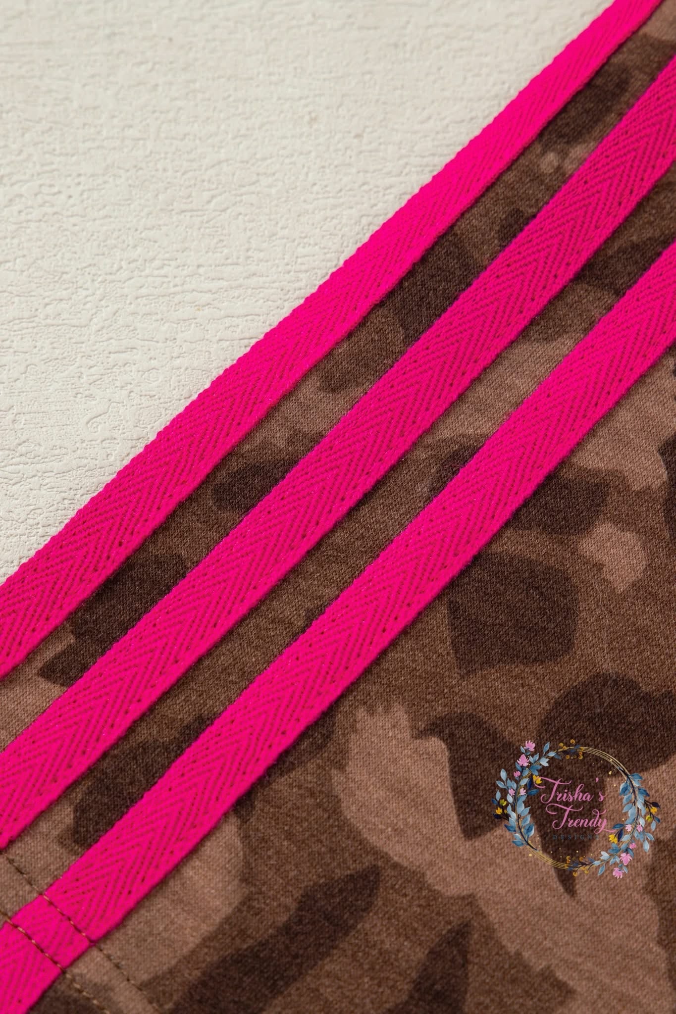 Get ready to turn heads with this fierce two-piece set that's equal parts wild and chic. The leopard print base gives major attitude, while hot pink stripes racing down the sleeves and sides of the shorts add a bold pop of color that demands attention. Perfect for anyone who refuses to blend in, this set lets you slay from sunrise to sunset. Comfort meets confidence in every wear.