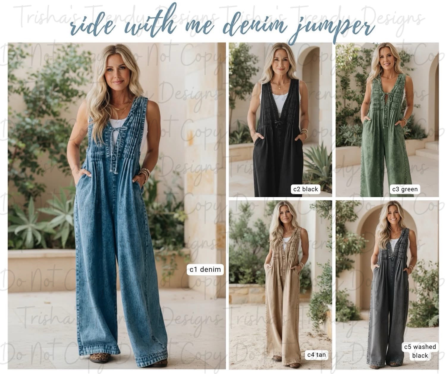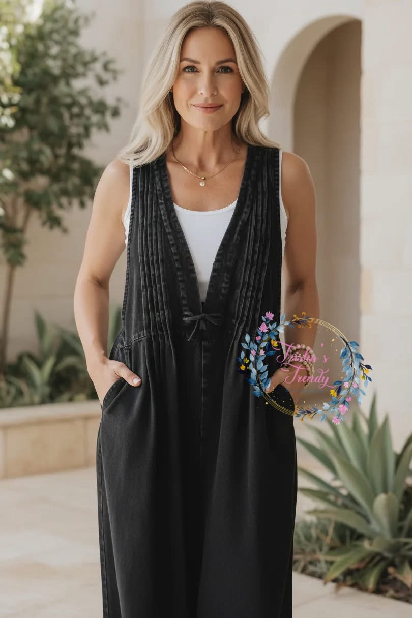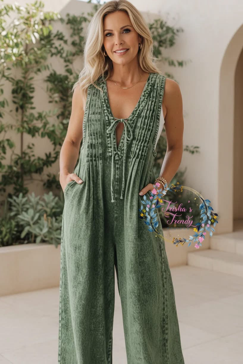 Meet your new denim obsession, the Ride with Me Jumper is here to shake things up. Rock the relaxed wide-leg silhouette with a flirty tie-front V-neckline that lets your style shine through. Practical pockets? Check. Five fabulous colors to match your vibe? Double check. Available in five sizes so everyone can join the fun. This is the jumpsuit that does it all, comfort, style, and personality rolled into one.