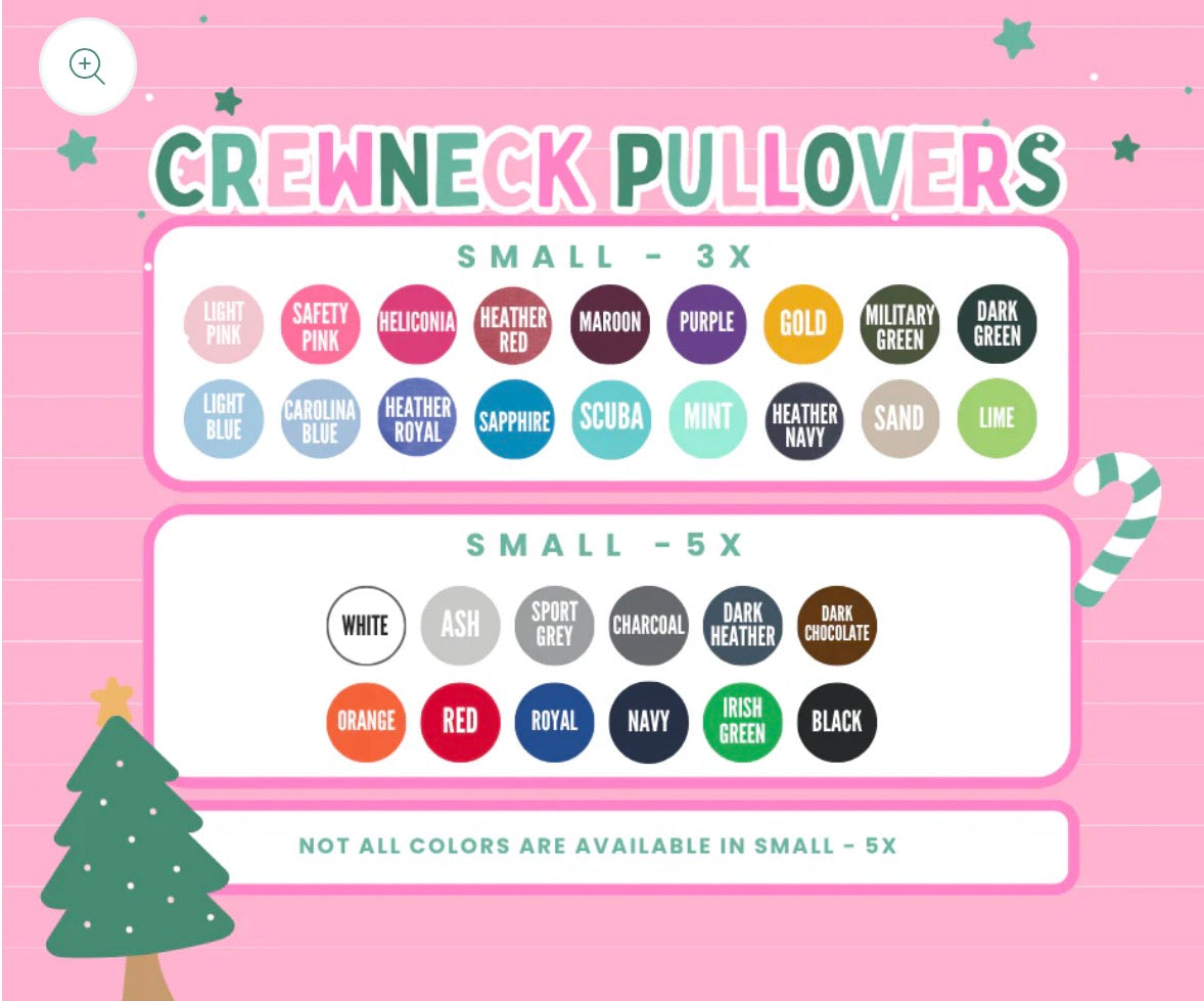 *Crewneck Pullovers are NOT comfort colors. They are a mixture of Gildan, Port&Co, Jerzees, etc. You cannot choose the brand, it depends on stock, color and size.